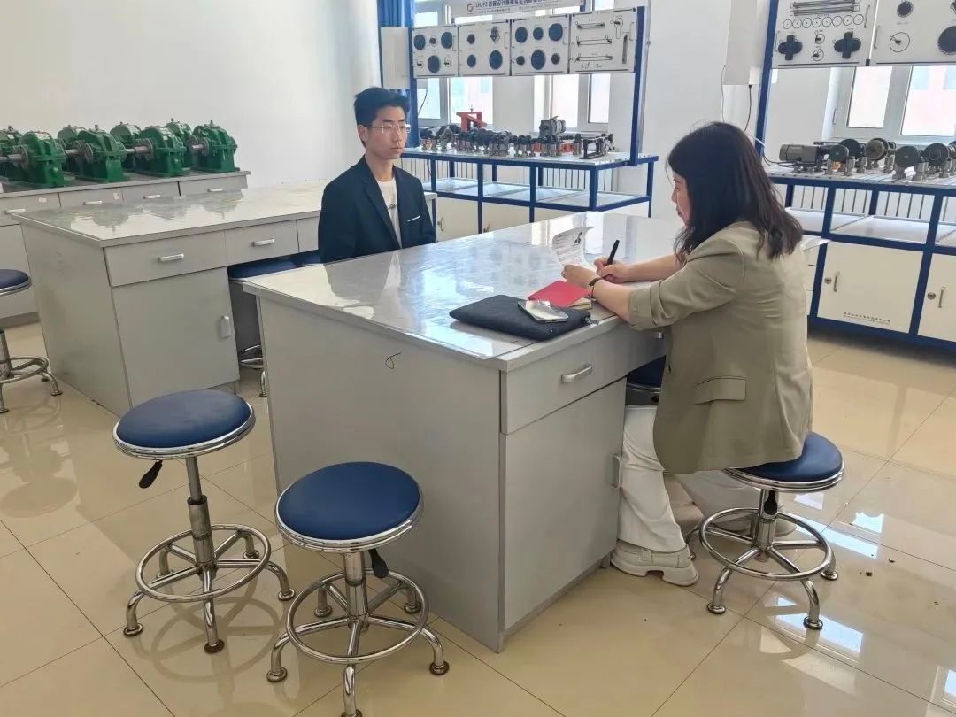 同日下午,各企业分别在机械楼205、206、210教室进行一对一面试。多名同学进入了复试环节,即将签约。