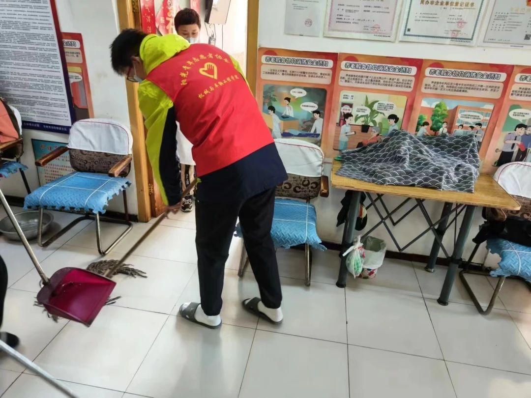 另一组志愿者负责打扫卫生,将屋子打扫得整洁明亮。在忙碌中,活动接近尾声。看着窗明几净的屋子,志愿者们的心里都充满了喜悦和满足,老人们也纷纷为志愿者们点赞。志愿者们践行“友爱、奉献、互助、进步”的志愿者精神,圆满地完成了此次志愿活动。