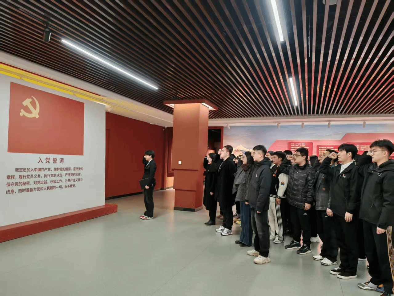 全体党员重温入党誓词,默哀并敬献鲜花。随后,党员代表依次发言,号召同志们以革命精神为指引,勇担时代使命。最后,全体党员进行合影留念。
