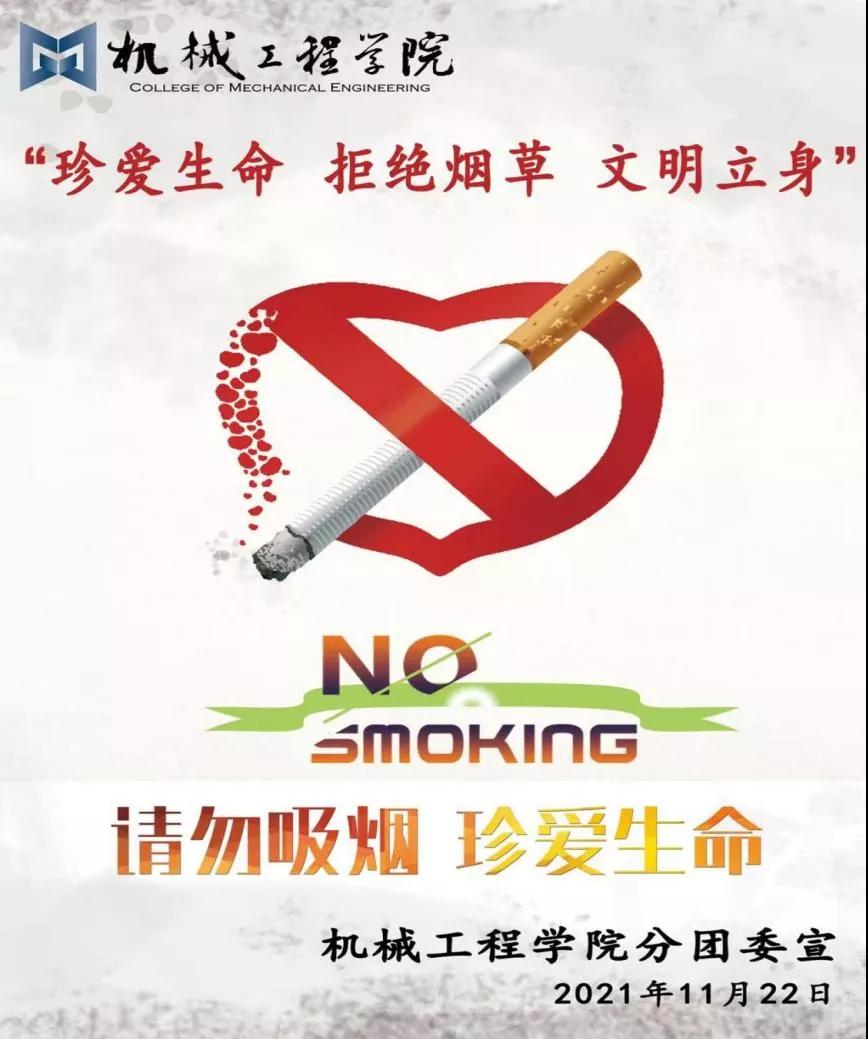 自11月19日起,机械工程学院在长德校区开展“珍爱生命,拒绝烟草,文明立身”控烟教育禁烟系列活动,机械工程学院一团两会承办本次活动,学院全体学生积极参与本次活动。