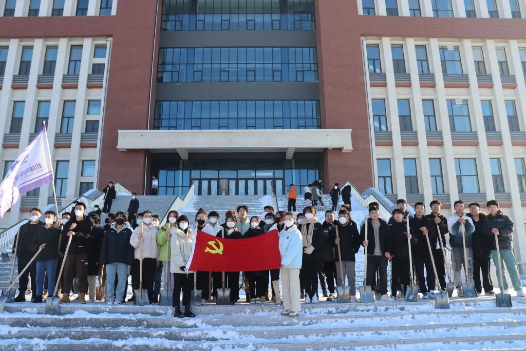 辛苦过后,台阶积雪基本清理,通向图书馆的道路畅通无阻,鲜红的党旗与院旗在空中飘扬,全体成员秉承不怕苦、不怕累的顽强作风,用行动和汗水为校园文明与安全贡献出力量。