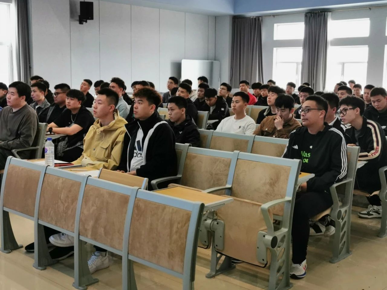 全体学生认真听讲,并且保证开车进校园时会时时刻刻提高警惕,自觉维护校园交通秩序。