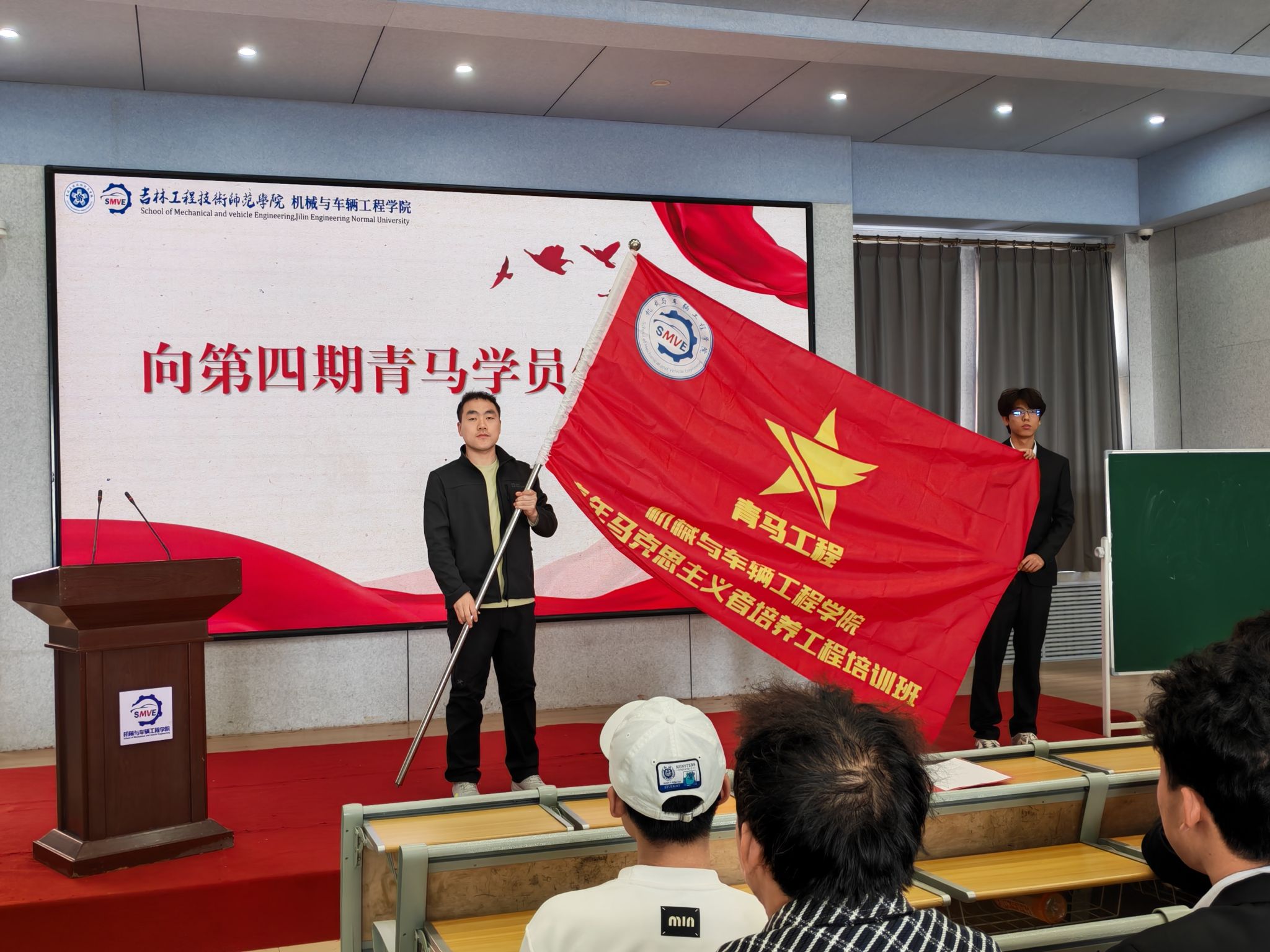 李志鹏为第四期“青马工程”培训班新学员代表赵文浩授旗,一面旗帜,承载着青马学子的信仰与荣光,更象征着新时代青年的使命与责任。是精神的传承,更是担当的交接,为全体新青马学员指引前行方向。