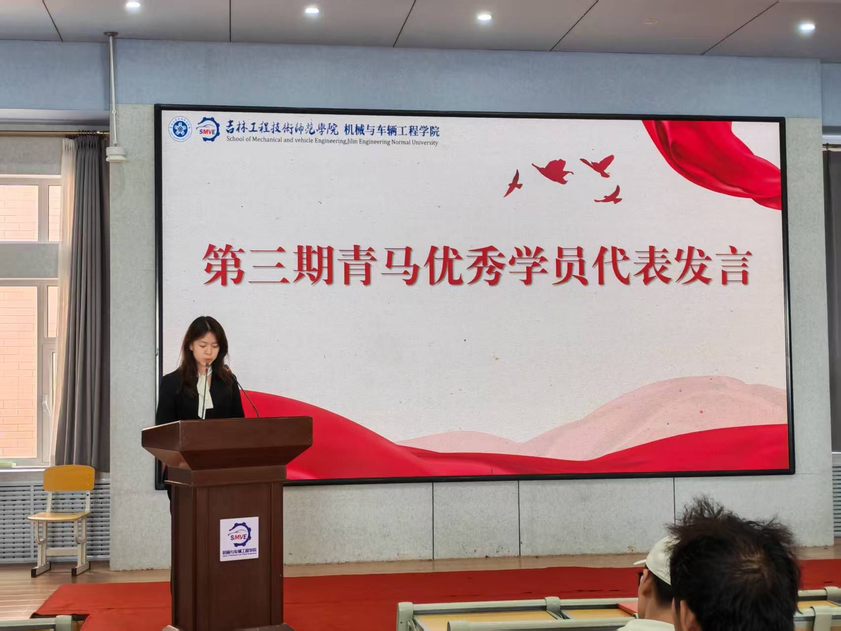 第三期“青马工程”培训班优秀学员代表张妍发言:全体学员通过系统学习党的创新理论、参与实践交流与思想研讨,筑牢了信仰根基,深刻感悟马克思主义真理力量,明晰了新时代青年的使命担当,不仅提升了政治素养,更在同伴互助中实现了思想与能力的双重成长。