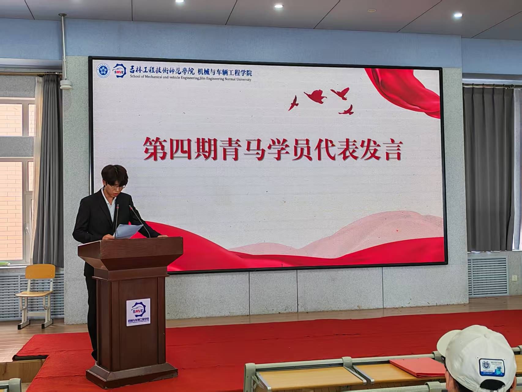 赵文浩发言,他向全体新学员作出承诺:全体新学员将以此次培训为新起点,坚定理想信念、筑牢思想根基,认真学习理论知识、积极参与实践历练,严守培训纪律、严于律己、锐意进取。同时承诺将牢记青年使命,扛起青马学子的责任与担当,以饱满的热情投入学习与成长,努力成长为有理想、敢担当、能吃苦、肯奋斗的新时代青年,不负期许、不负韶华。