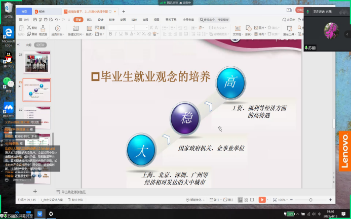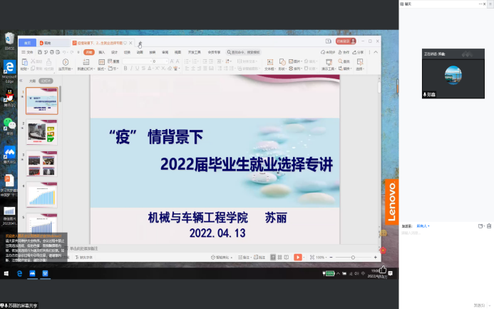 为进一步加强和做好毕业生就业指导工作,教育和引导毕业生正确认识当前就业形势,在“疫”情困境中逆流而上,找准位置,精准就业,yl23455永利集团于4月13日晚7点,由院党委副书记苏丽在线上开展“疫”情背景下2022届毕业生就业选择专讲,2022届和2023届毕业生参加本次讲座。