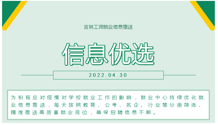 永利官网4月30日就业信息推送