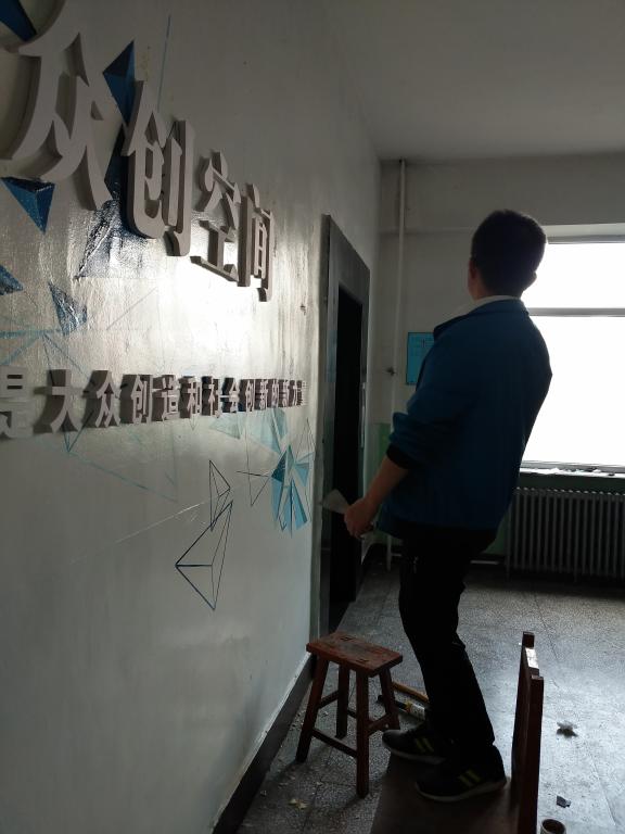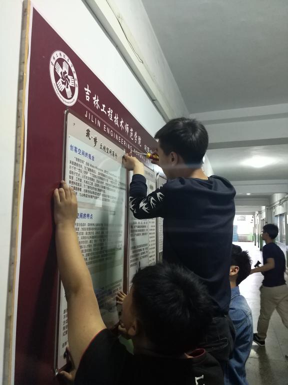 学生设计制作“筑梦·众创空间”形象墙、展示板