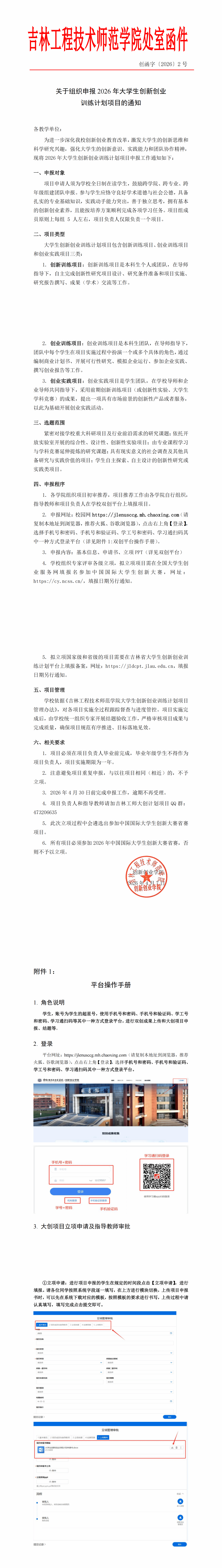 关于组织申报2026年大学生创新创业训练计划项目的通知