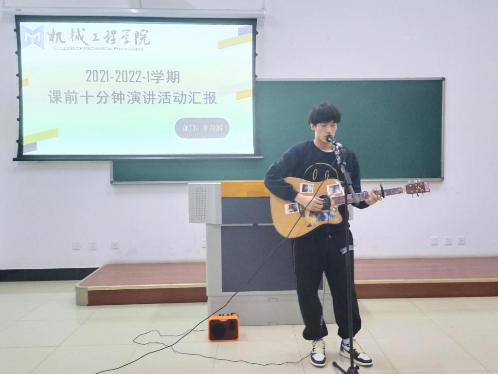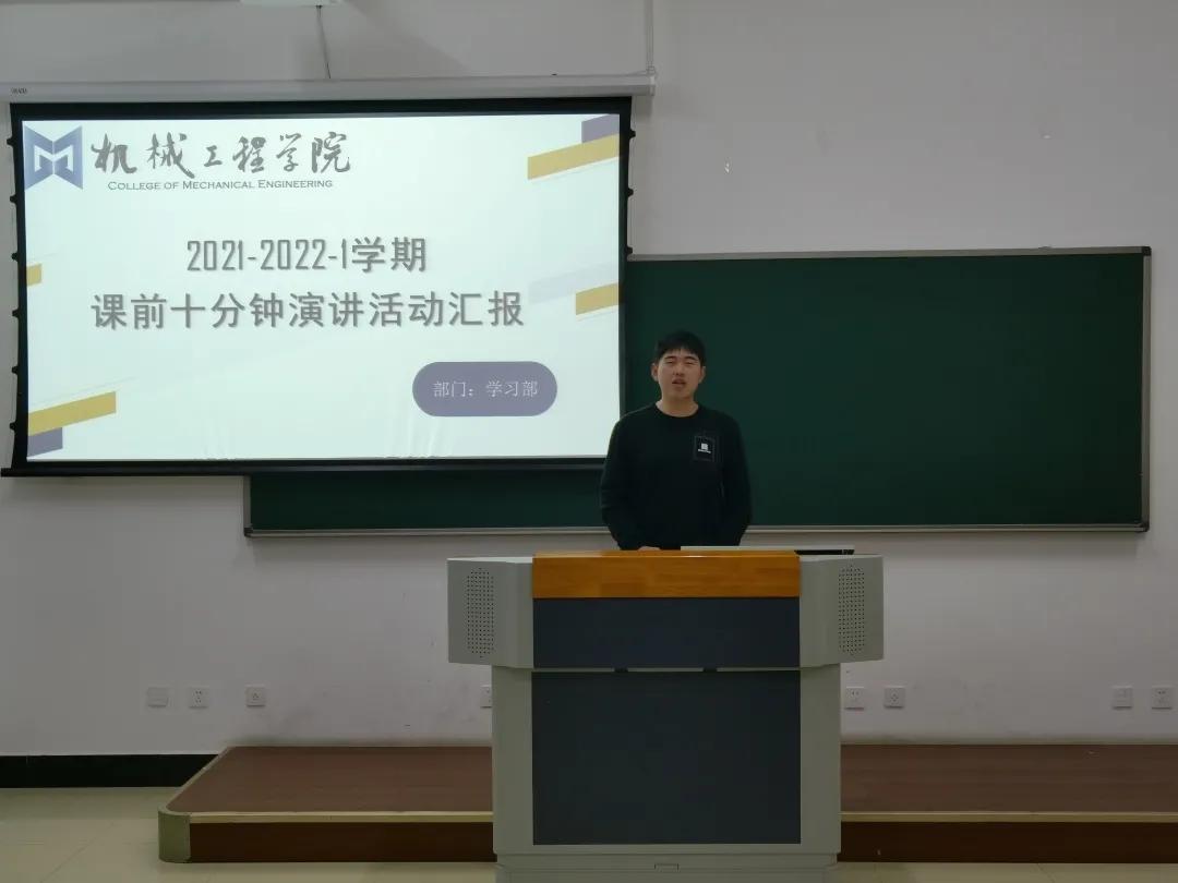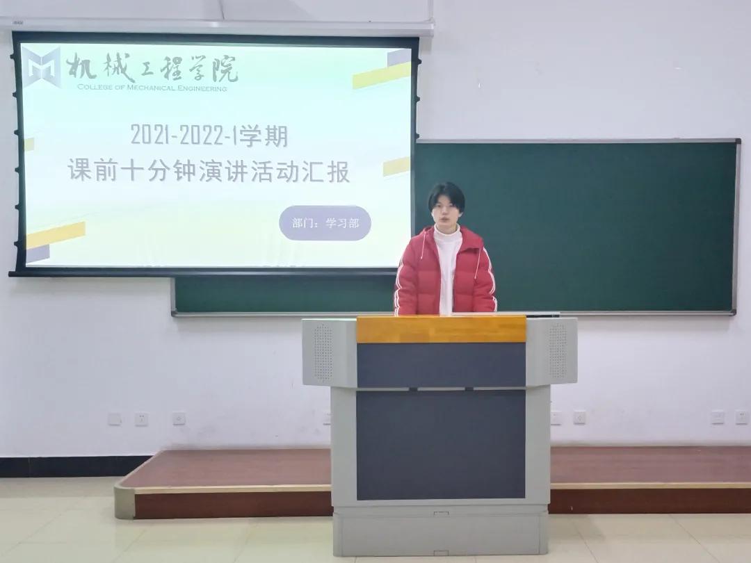 12月15日,机械工程学院“课前十分钟”总结汇报活动,学生会执行主席谢添,21级各班学生代表参与本次活动。