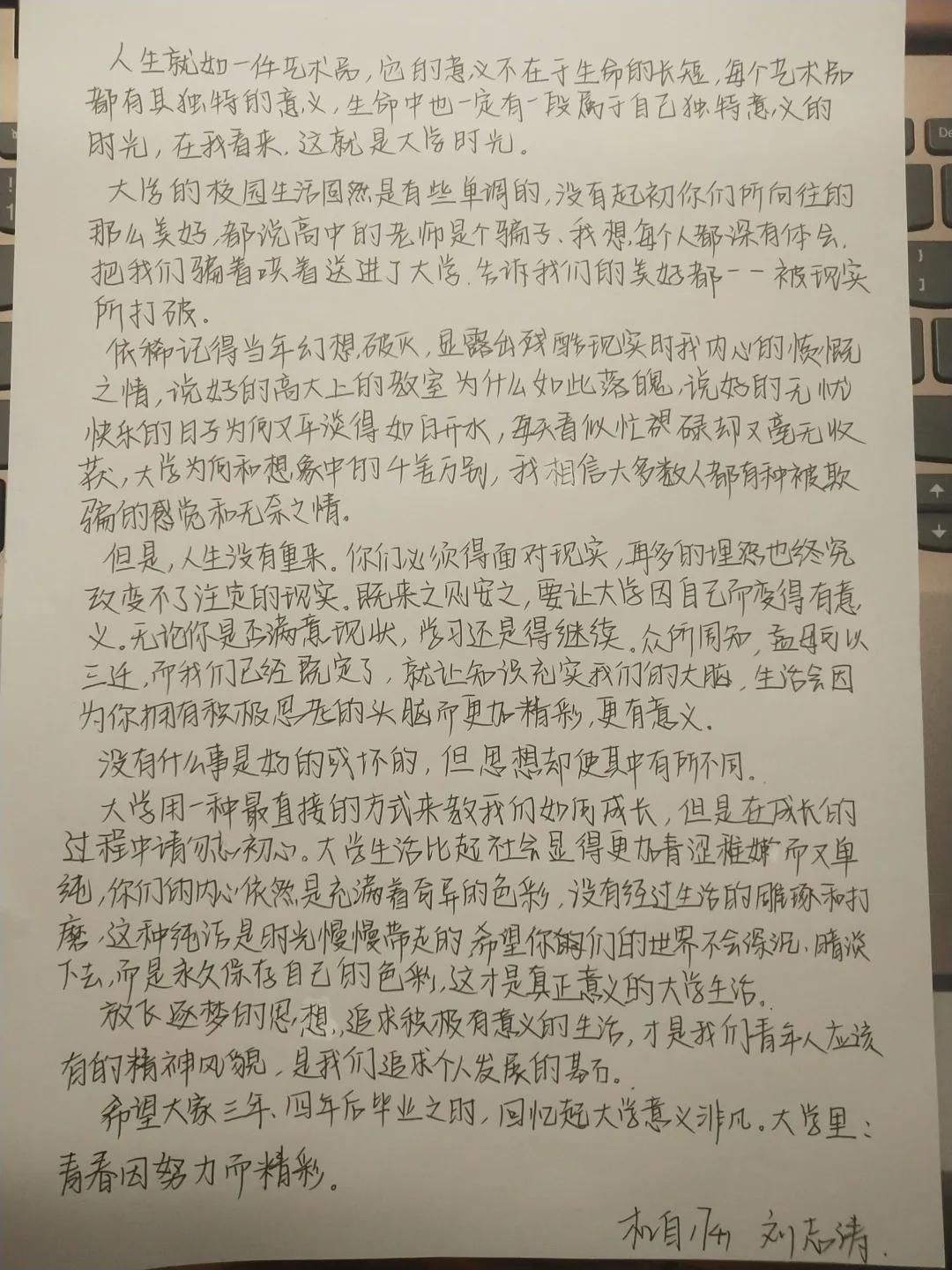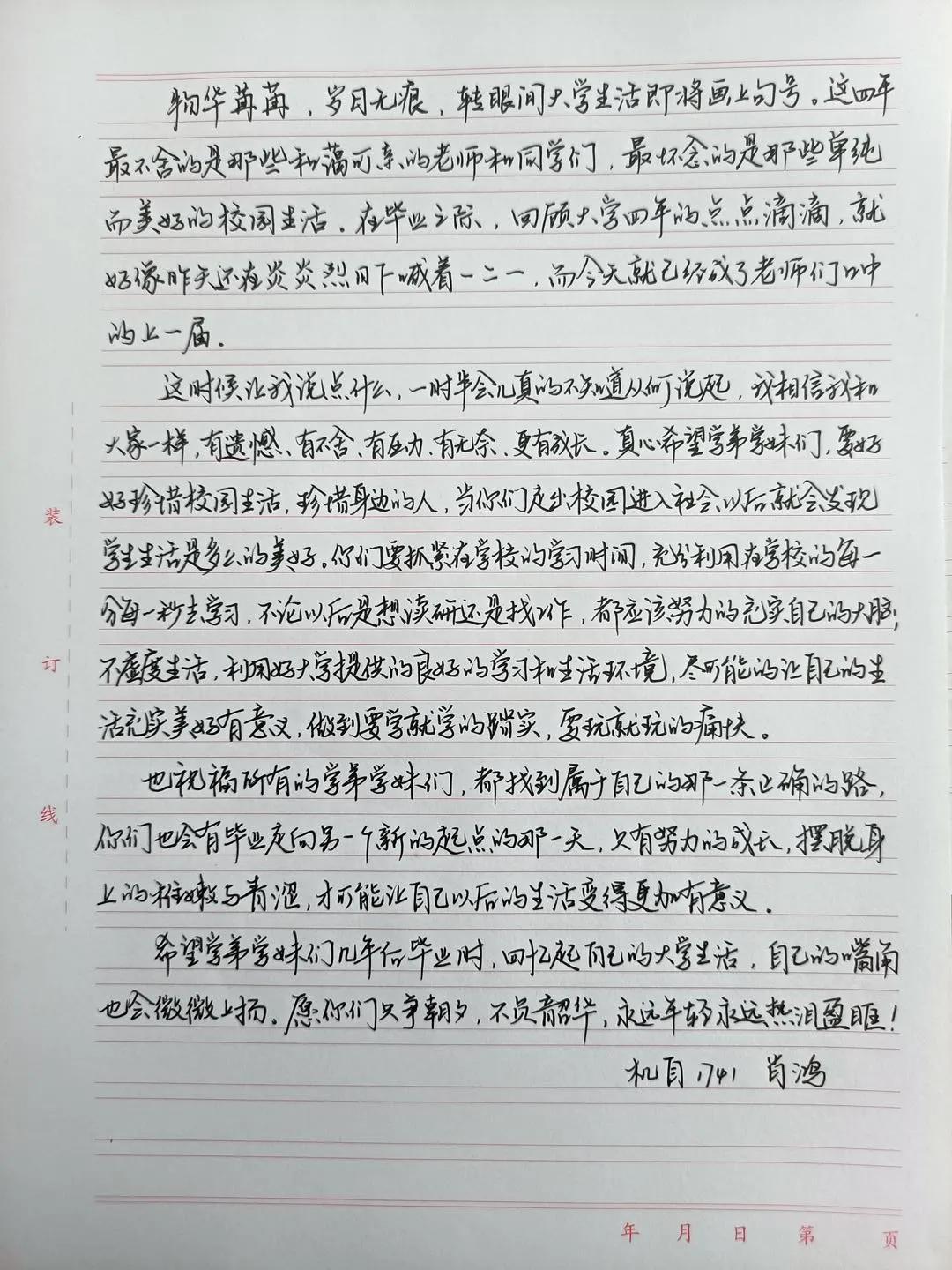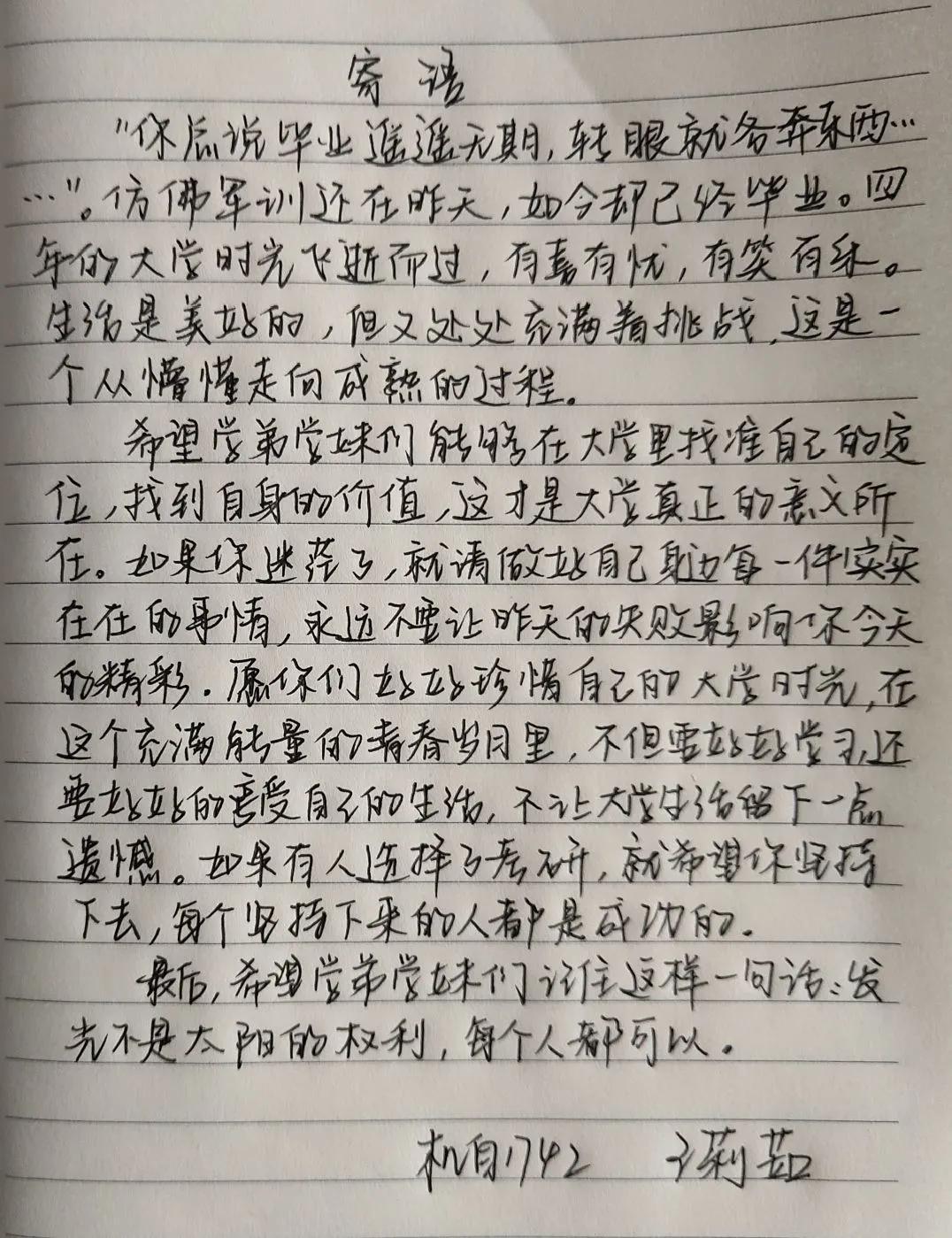 机械工程学院欢送2021届毕业生 来源:学生天地 2021/06/12 毕业季 树影摇曳,已至盛夏时节 暖风徐徐,才发觉又是一年 四年大学时光如白驹过隙 转瞬之间便走到了尽头 前程似锦 忽然发现 从毕业的旁观者到主角 原来只要四十八个月的时间 依旧记得入学的憧憬与向往 依旧记得复习周的拼搏与奔忙 依旧记得班级聚会的欢笑与歌唱 依旧记得过去四年里的愉悦时光 请保持那一份热爱 奔赴下一场山海 平安喜乐 时光匆匆 仿佛也再没理由与你一同 所以我们珍惜这最后的时光 用相机记录下我们青春的模样 希望你继续兴致盎然的与世界交手 一直走在开满鲜花的路上 万事如意 人生难得是欢聚,唯有别离多 让我们在分别之前 互道珍重