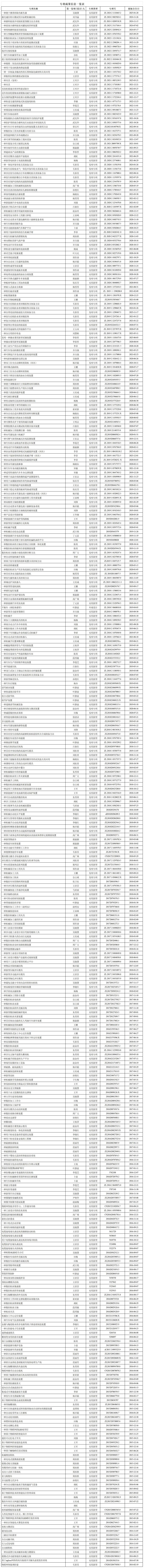 专利成果信息一览表