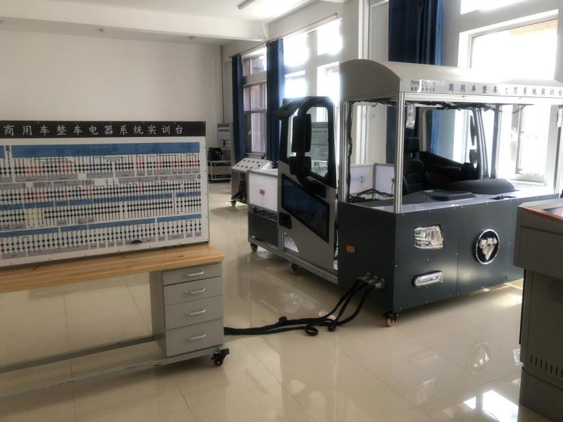 商用车电器实训室设有商用车整车电器系统实训台、商用车空调系统实训台和商用车ABS系统实训台,实现了设置故障、检测故障、排除故障等可视化实训内容。