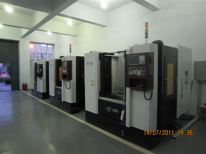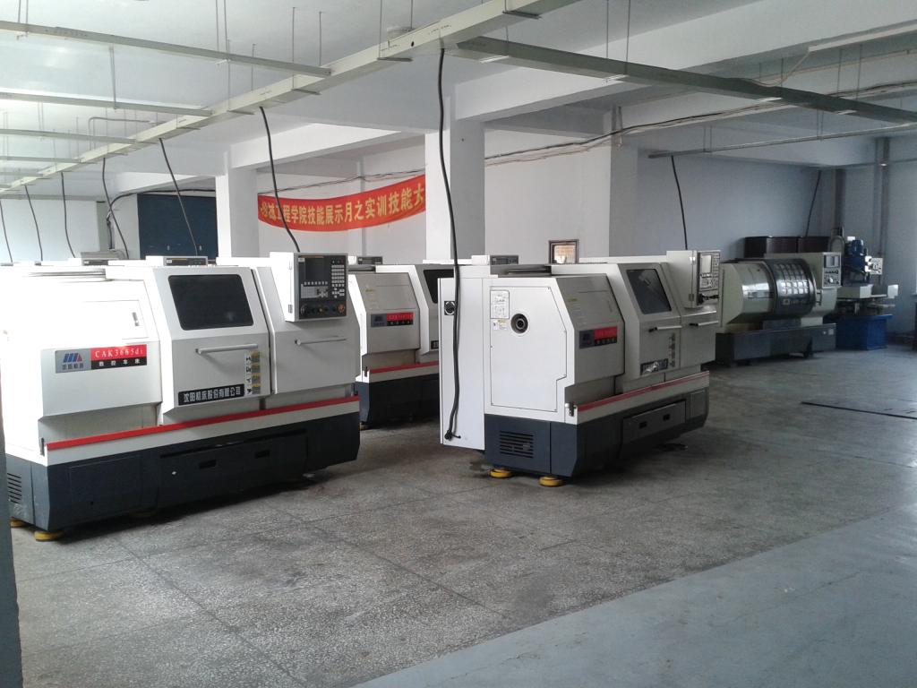 数控实训室 来源:工程训练中心介绍 2017/05/09 中心成立于2004年,2011年被评为吉林省普通高等学校实验教学示范中心。中心从建校之初的普通机加设备逐渐发展到现在的仪器先进、设备种类齐全的实训中心。面积550m2,开设数控实验、数控技能实训、数控操作工职业资格考试培训等项目。现有专兼职教职工6人,其中教授1人,讲师1人,实验师3人,长白山技能名师2人。每年承担机械工程学院5个专业及相关工科院系500人次、3000人时的实践教学任务。中心现拥有立式加工中心4台、数控铣床6台、数控车床16台、数控电火花成型机1台、数控电火花线切割机1台、三坐标精密测量仪1台等先进仪器设备29台套,设备总值达1500余万元。构建了以综合性、应用性实验和工程能力训练为核心,学科竞赛为引导,实训环节有机融合的实践教学体系。将实验教学过程紧密与机械类专业职教师资师能和工程能力训练相结合,突出学生实践动手能力和工程创新能力培养。本中心教师指导的学生在全国数控技能大赛、大学生工程训练综合能力大赛、职业院校技能大赛等各级各类科技竞赛中获省级奖项36项;本专业学生获高级数控车床、数控铣床操作工职业资格证书率达98%。